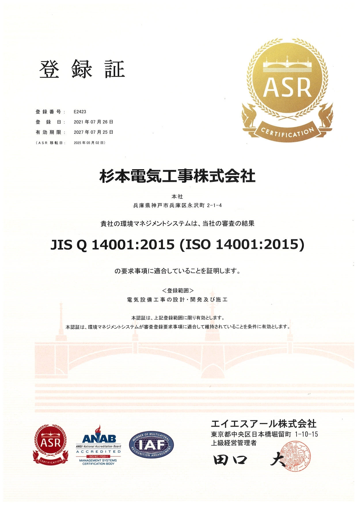 品質環境認証(ISO9001:2015)(ISO14001:2015)